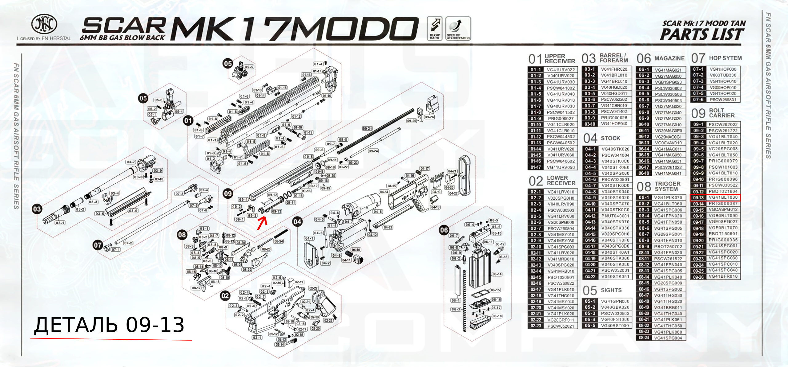 Оригінальний нозл (комплект запчастин) для VFC SCAR H GBBR (MK17) — це замінний комплект нозла для серії VFC SCAR H GBBR.