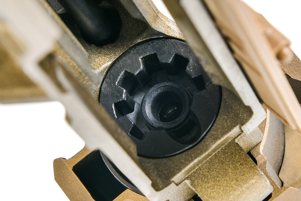 У болтовому вузлі VFC HK416 A5 використовується довгорамний сталевий болт із кулачковою конструкцією та з посиленою полімерною головкою болта, усі вони були модифіковані для підвищення довговічності та стабільності.