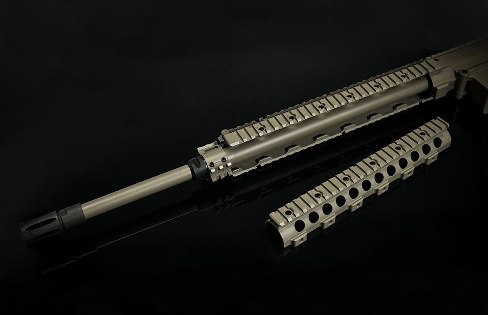 Реалістична конфігурація з програмою SASS від армії США включає цівку KAC URX II, фіксовану прикладу A2 типу SASS, відкидний цілик KAC 600 м, ствольну коробку типу 7,62 і 20-дюймовий важкий ствол із пламегасителем. Наші інженери витрачають багато часу, щоб налаштувати точність стрільби.