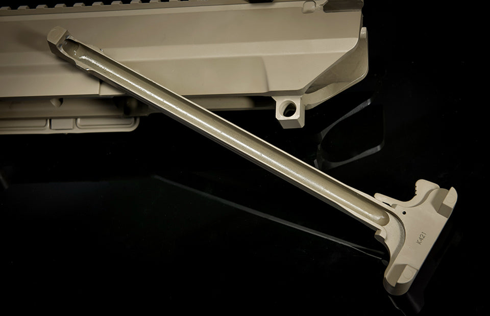 Приймач M110 у стилі 7,62 додає функції заводських елементів керування обома руками. Він включає затворну засувку, розблокування магазину та важіль селектора. Підвищена гнучкість управління зброєю.